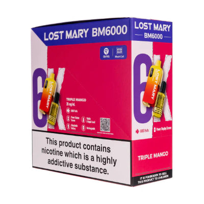 It comes in lots of cool flavours, so you can pick what you like. And with a pack of five, you've always got a new one ready. It's easy and smooth and makes vaping no trouble at all. Simple, smooth, and ready to go—it just makes vaping easier. Each one has 20mg of smooth nicotine salt, giving you the perfect hit. Whether you're new to vaping or experienced, the Lost Mary BM6000 is an easy and reliable choice. Grab yours now and experience the convenience and flavour everyone's talking about!